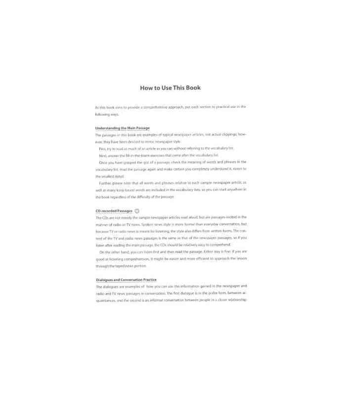 The aim of this book is to provide an opportunity to read and understand sample newspaper articles from various facets of modern Japan and to offer practice materials which will enable you to discuss those articles with friends and acquaintances. We have included exercises that are based on a conversational format so you can improve your speaking skills.