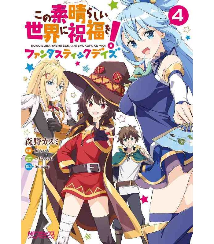 Volume 4 da manga Kono subarashi sekai ni shukufuku wo! Fantastic days (この素晴らしい世界に祝福を!ファンタスティックデイズ ), também conhecido como KonoSuba! Esta adaptação da manga é baseada numa série de romances ligeiros escritos por Akatsuki Natsume.