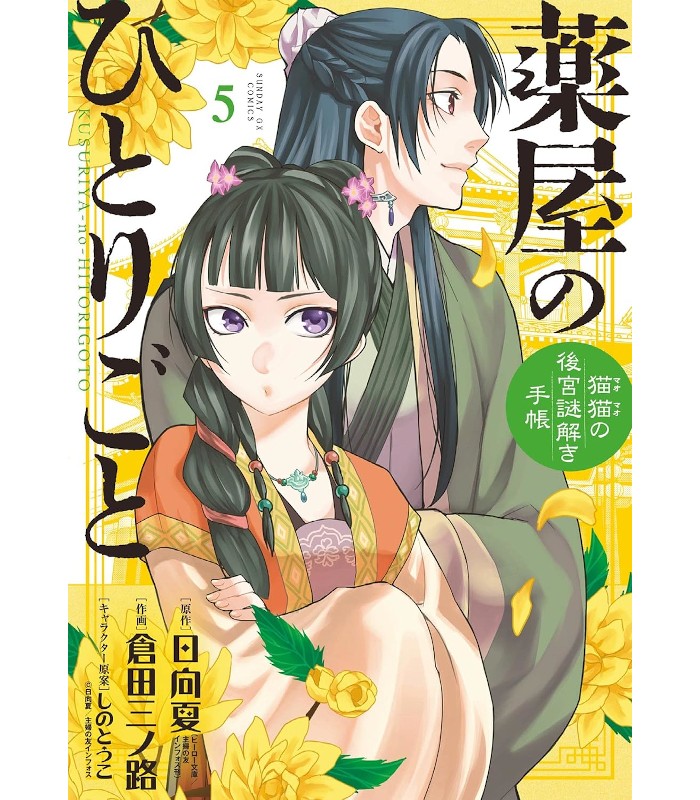 Volume 5 da versão manga de The Apothecary Diaries (薬屋のひとりごと), baseado nos light novels de Natsu Hyūga e Touko Shino. Esta versão manga foi ilustrada por Minoji Kurata e escrita por Natsu Hyūga. Foi publicado pela primeira vez na revista Monthly Sunday em agosto de 2017.