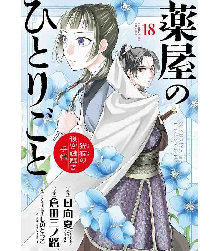 Volume 18 da versão manga de The Apothecary Diaries (薬屋のひとりごと), baseado nos light novels de Natsu Hyūga e Touko Shino. Esta versão manga foi ilustrada por Minoji Kurata e escrita por Natsu Hyūga. Foi publicado pela primeira vez na revista Monthly Sunday em agosto de 2017.