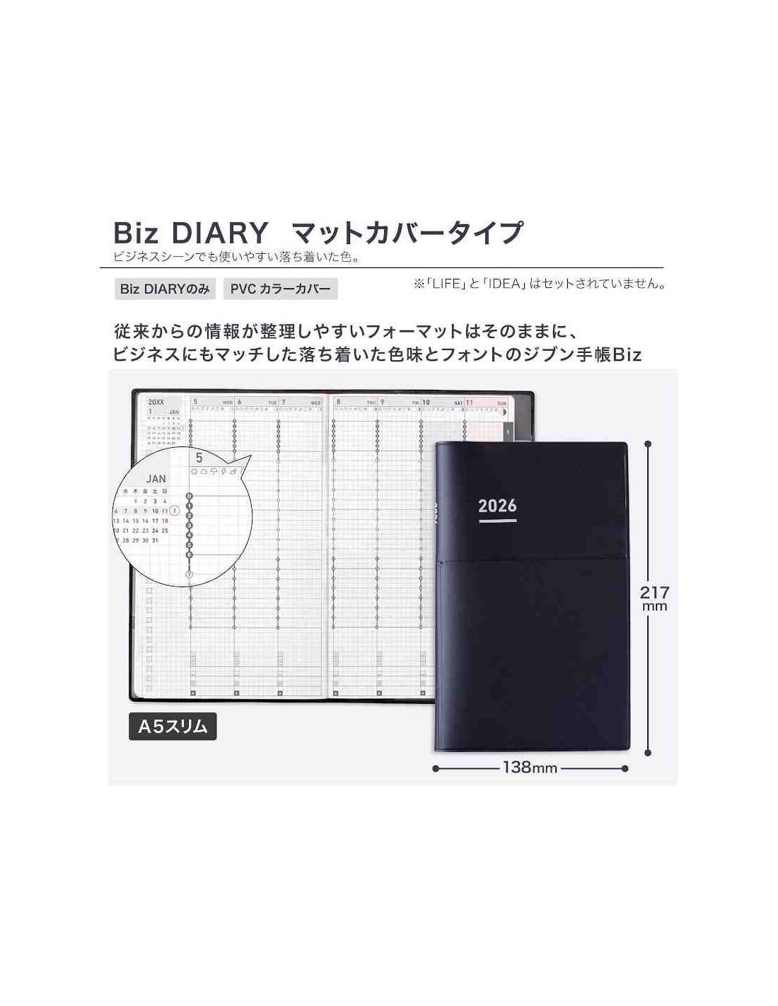 Jibun Techo Kokuyo - Agenda 2026 - Biz Diary - A5 Slim - Azul marinho