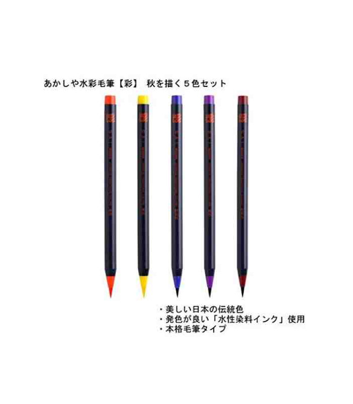 Akashiya Watercolor Brush Pen Sai 5 Colors Set (Autumn)