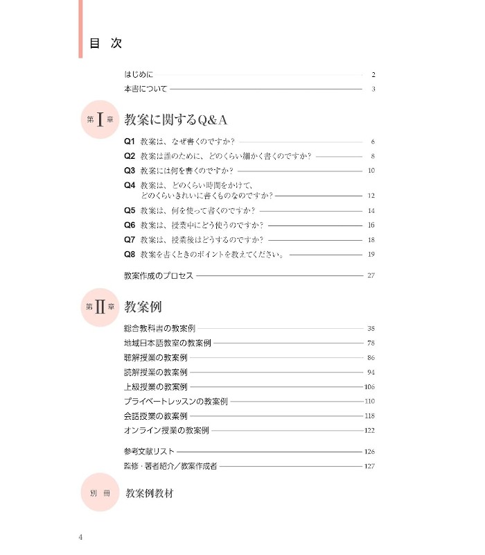 「実習のために教案を作成しなければならないけど、書き方がまるっきりわからない」「日本語教師になったけど、自分の教案で大丈夫なのか不安。他の人はどんな教案を作っているのか見たい」「後輩教師の教案をチェックする立場だけど、実は自分もわかっていない。教えるための拠り所になるテキストがほしい」